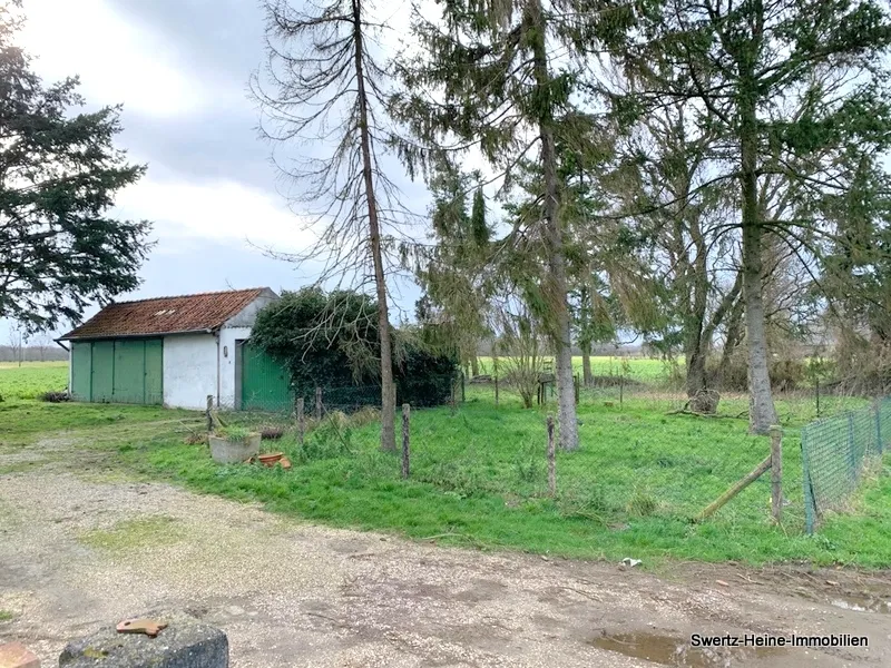 Neben den umlaufenden Gartenflächen existiert hinter dem Haus noch ein weiteres Gebäude, welches als Garage und als Werkstatt genutzt wurde.