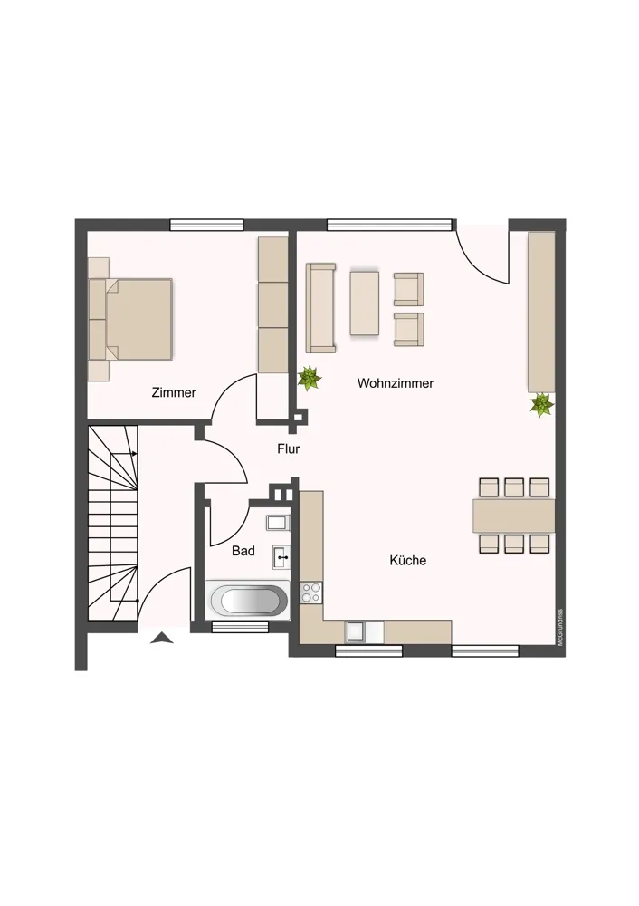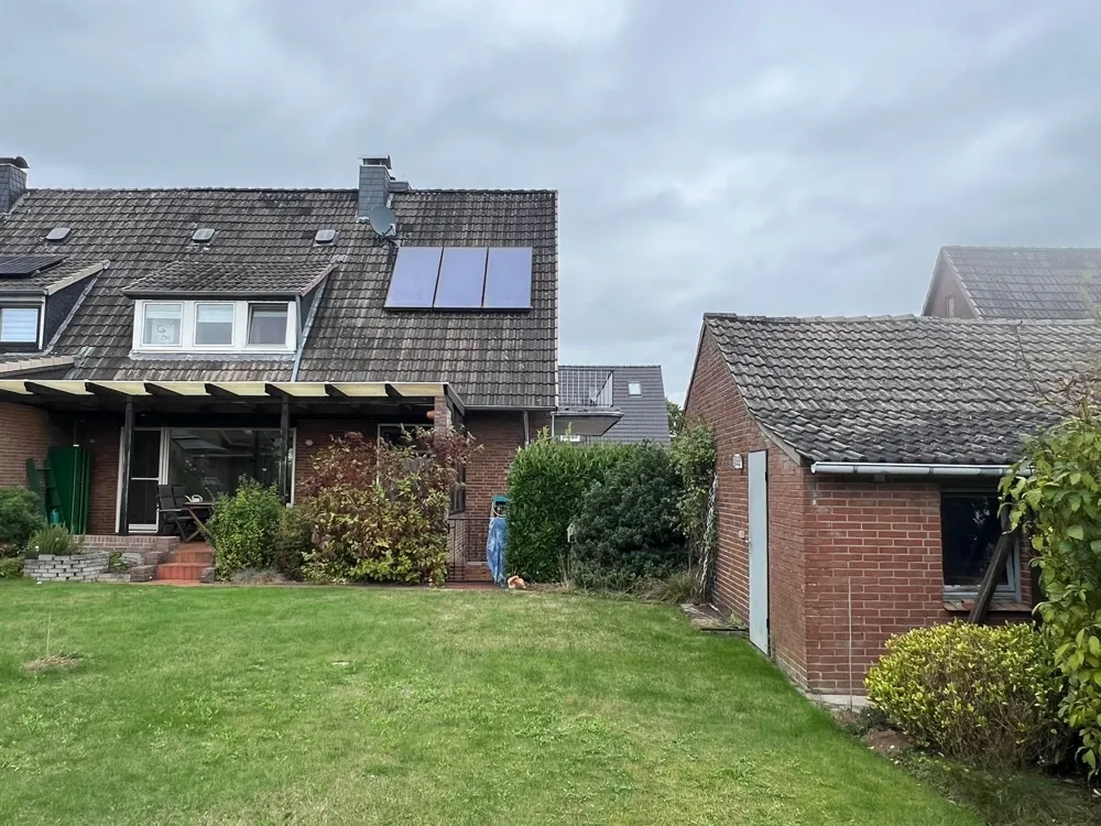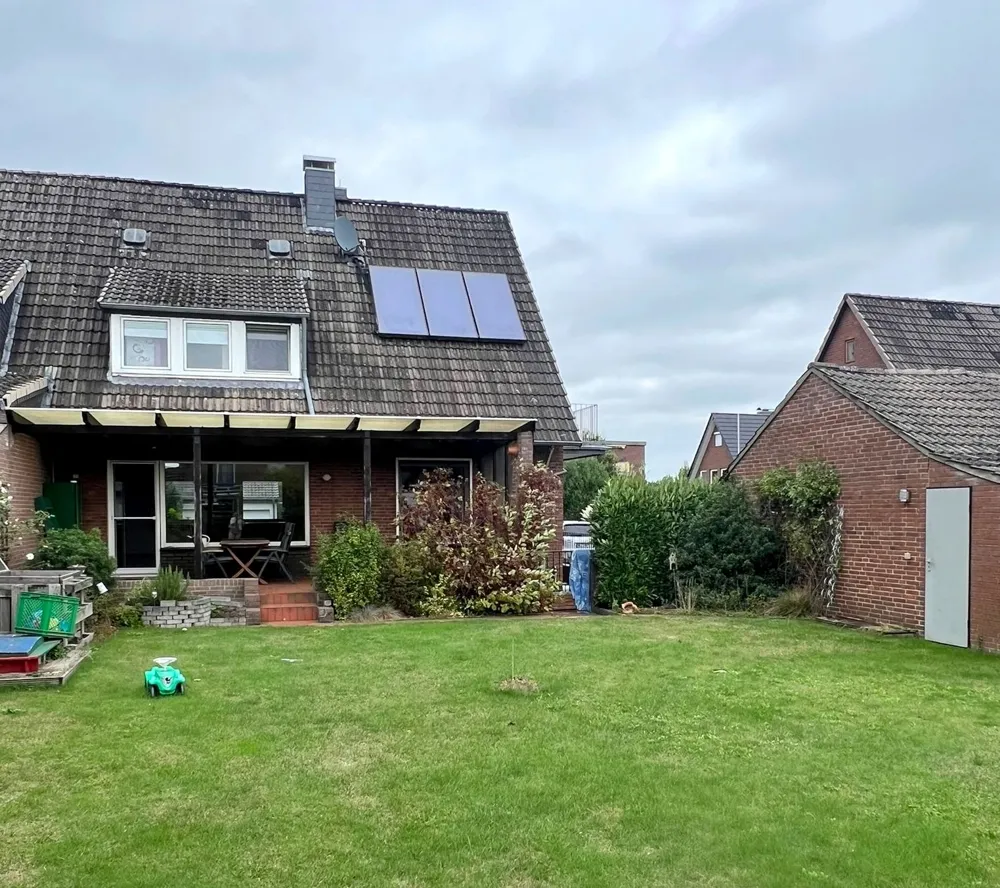 Hier wird eine Doppelhaushälfte angeboten, die 1963 auf einem ca. 620 m² großen Grundstück in Massivbauweise errichtet wurde. Die Wohnfläche verteilen sich auf Erd- und Obergeschoss und sind über eine Treppe vom Keller bis ins Obergeschoss miteinander verbunden. Im Erdgeschoss bildet der offen gestaltete Wohn- und Essbereich das Herzstück des Hauses, ergänzt durch die Küche. Im Obergeschoss befinden sich das Elternschlafzimmer, zwei Kinderzimmer, Flur und Bad. Der Keller ist zudem über eine Außentreppe erreichbar. Der Garten liegt hinter dem Haus und lädt mit Terrasse, Rasenfläche sowie diversen Beeten und Anpflanzungen zum Verweilen ein.