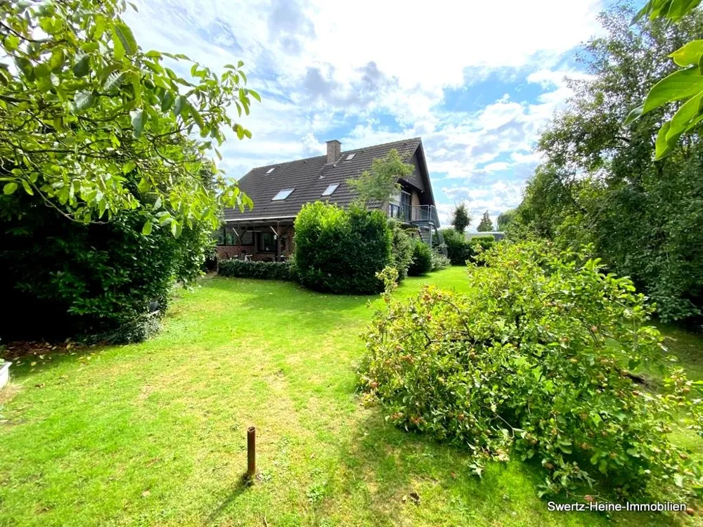 Drei Garage runden das Gesamtbild ab. Der Garten verfügt über unterschiedlichste Anpflanzungen, Rasenflächen, Blumenrabatten und im hinteren Bereich über einen älteren Baumbestand und verschiedene Freisitze.
