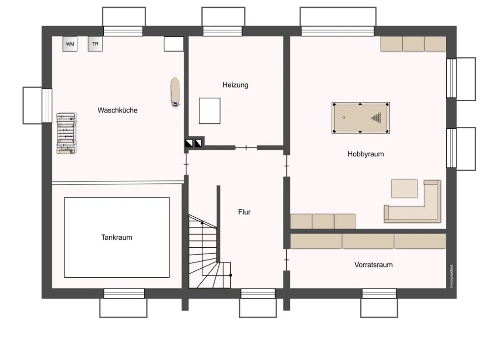 Bedingt durch die Komplettunterkellerung des Objektes steht ausreichend Nutzfläche zur Verfügung.