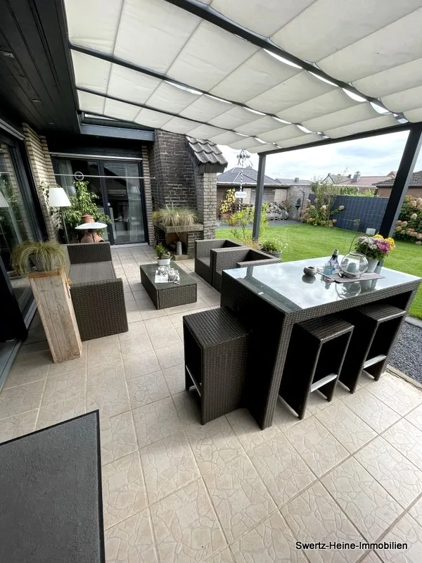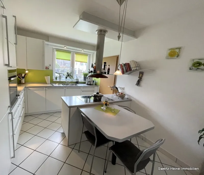 Das Objekt befindet sich in einem sehr gepflegten Allgemeinzustand. Im Bereich der geräumigen Diele und der Küche ist der Boden mit Fliesen ausgelegt, die übrigen Räume verfügen über Laminatböden. (Schlafzimmer, Büro, Wohnzimmer)