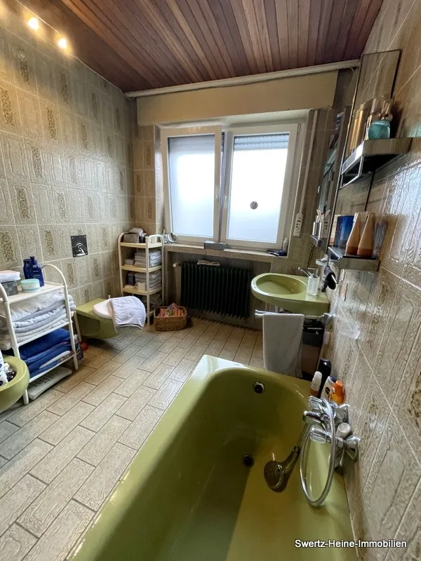 Angeboten wird hier ein gepflegtes, freistehendes Einfamilienhaus, das im Jahr 1974 auf einem ca. 750m² großen Grundstück erbaut worden ist. Das komplett unterkellerte Objekt ist in Massivbauweise erstellt und mit einem Verblender versehen; die Wohn- und Nutzfläche verteilt sich auf Erd- und Dachgeschoss sowie einen Souterrain-Bereich. Im Erdgeschoss befinden sich das großzügige Wohnzimmer mit angrenzendem Essbereich, Küche, Bad, Gäste-WC, ein weiterer großzügiger Raum, der momentan als Büro genutzt wird und ggf. teilbar wäre und der Diele mit Treppenauf / -abgang.