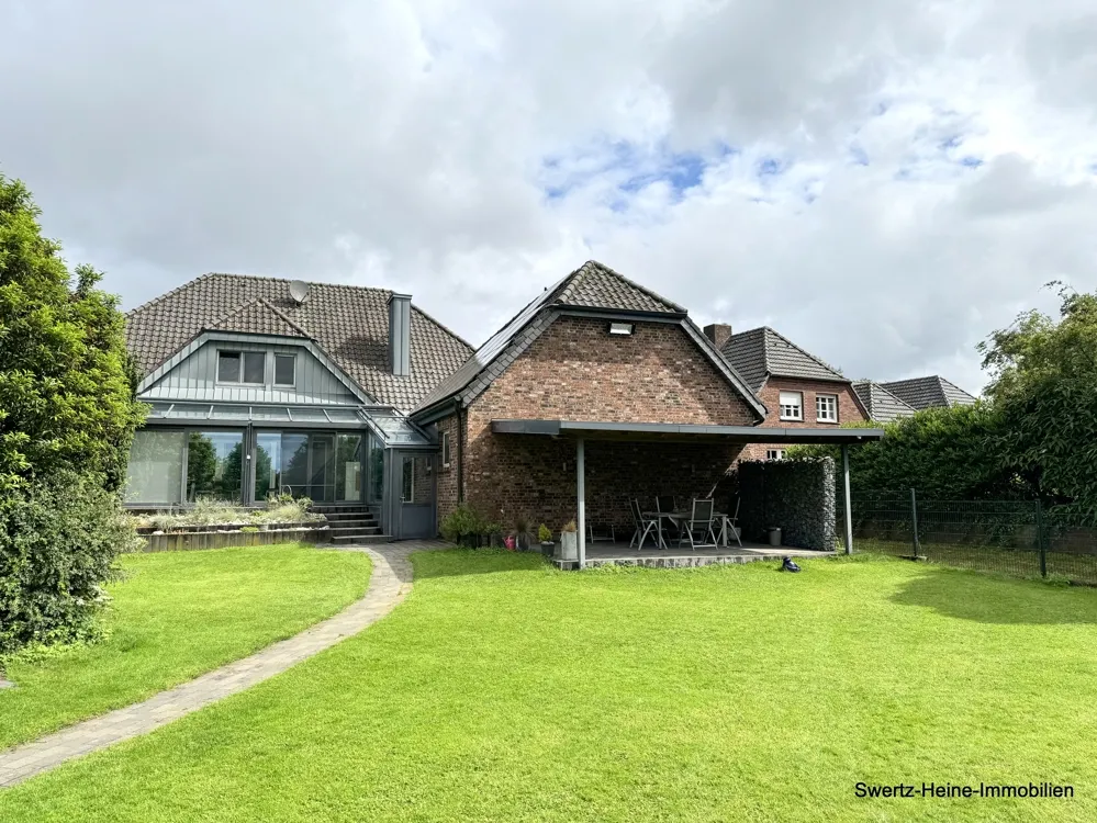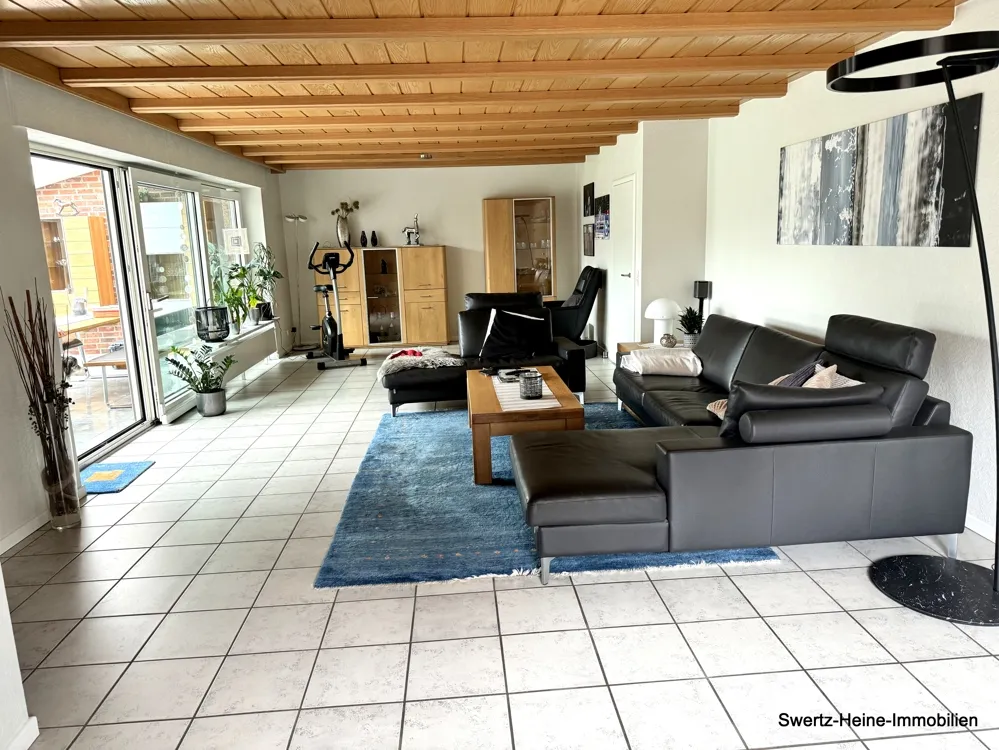 Angeboten wird hier ein gepflegtes Einfamilienhaus, das 1988 in Massivbauweise auf einem 641 m² großen Grundstück errichtet worden ist. Das unterkellerte Objekt verfügt über eine Gesamtwohnfläche von ca. 148 m² - zzgl. der Fläche des Wintergartens. Eine Besonderheit besteht darin, dass der 1988 neu errichtete Baukörper giebelseitig an eine eingeschossige Bestandsimmobilie (Familie) angebaut wurde. Des Weiteren wurde gleichzeitig ein etwas zurückliegendes separates Garagengebäude errichtet. Die Wohnfläche des Objektes erstreckt sich auf das Erdgeschoss, deren Mittelpunkt der großzügige und offen gestaltete Wohn- und Essbereich bildet, ergänzt durch den angrenzenden Wintergarten inkl. Markise. Des Weiteren befinden sich hier die Küche, Gäste-WC und der Eingangsbereich mit Diele und freitragender Treppe in das Keller- bzw. Obergeschoss. Hier befinden sich zwei Kinderzimmer, Elternschlafzimmer, ein Büro bzw. Gästezimmer, das in 2020 erneuerte Bad mit Badewanne und Dusche sowie der Flur mit einem zusätzlichen, kleinen Abstellraum.