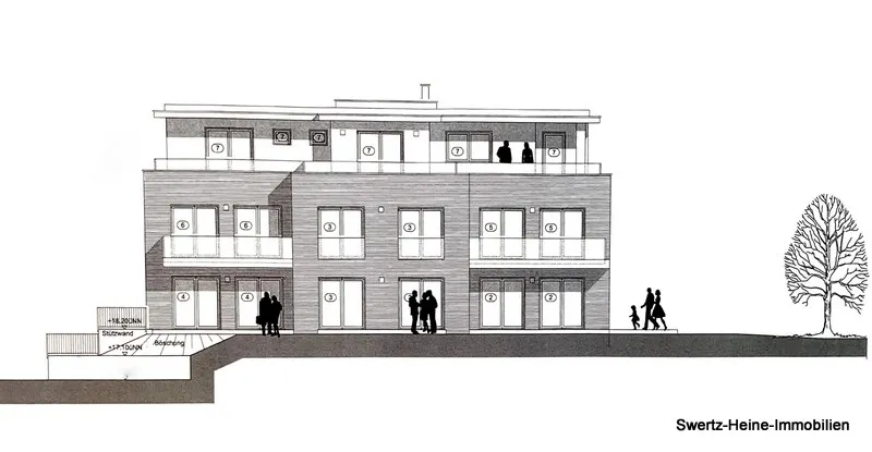 An der Marienwasserstraße/Ecke Kaplan-Büscher-Str. von Goch entsteht ein Objekt (Ferigstellung 2021) mit insgesamt 7 Wohneinheiten. Die jeweiligen Einheiten erstrecken sich auf 4 Ebenen, d.h. auf Keller,- Erd-, Ober- und Dachgeschoss (Penthouse) - inklusive Aufzug.