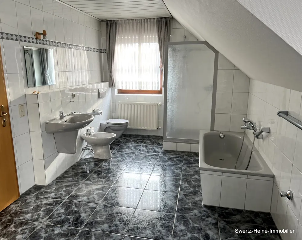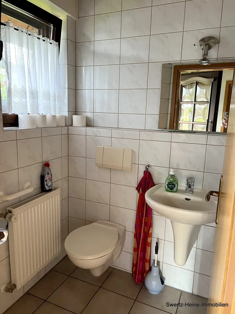 Angeboten wird hier eine Doppelhaushälfte, die 1994 auf einem ca. 429 m² großen Grundstück in Massivbauweise errichtet worden ist. Die Wohnfläche beträgt ca. 118 m² und verteilt sich im Erdgeschoss auf den Wohn- und Essbereich mit angrenzender Küche, Gäste-WC und die Diele; aufgrund einer veränderten Lebenssituation wurde nachträglich auf dieser Ebene ein barrierefreies Duschbad geschaffen. Das Obergeschoss verfügt über zwei Schlafzimmer und über das eigentliche Hauptbad mit Dusche und Badewanne und über einen kleinen Balkon. Im Kellergeschoss befinden sich die entsprechenden Nutzflächen für Vorräte, Heizung und Wäschepflege - zusätzlich führt eine Außentreppe vom Keller in den Garten. Giebelseitig ist eine etwas zurückliegende Garage angebaut, über die auch eine Zugangsmöglichkeit zum Garten besteht, davor existiert ein weiterer Stellplatz.