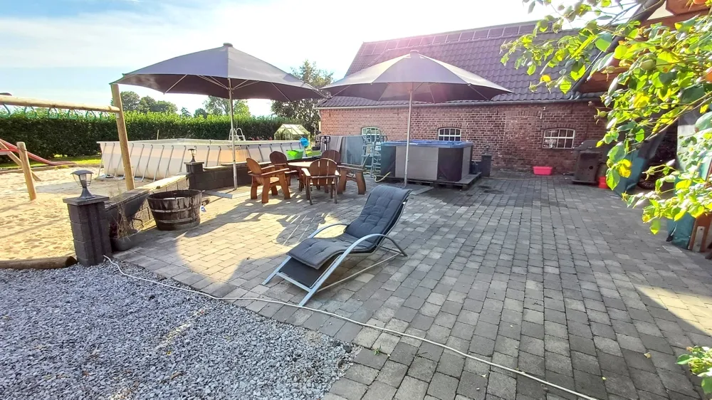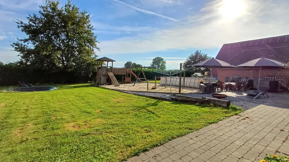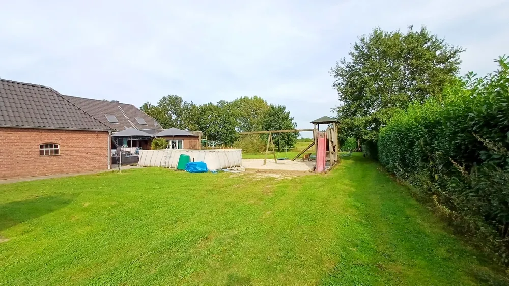 Das Objekt liegt nur einen kurzen Weg von Hasselt entfernt und bietet dennoch eine ruhige Alleinlage. Man blickt direkt auf die Kirche des Ortes, umgeben von weiten Feldern, die eine idyllische und ländliche Atmosphäre schaffen. Auf der anderen Seite kann man die Schwanenburg sehen, was die Lage zusätzlich aufwertet. Trotz der ruhigen Lage ist die Hofstelle zentral gelegen und somit gut erreichbar – perfekt für alle, die Natur und Ruhe schätzen, aber auch die Nähe zu einer lebendigen Gemeinde suchen.