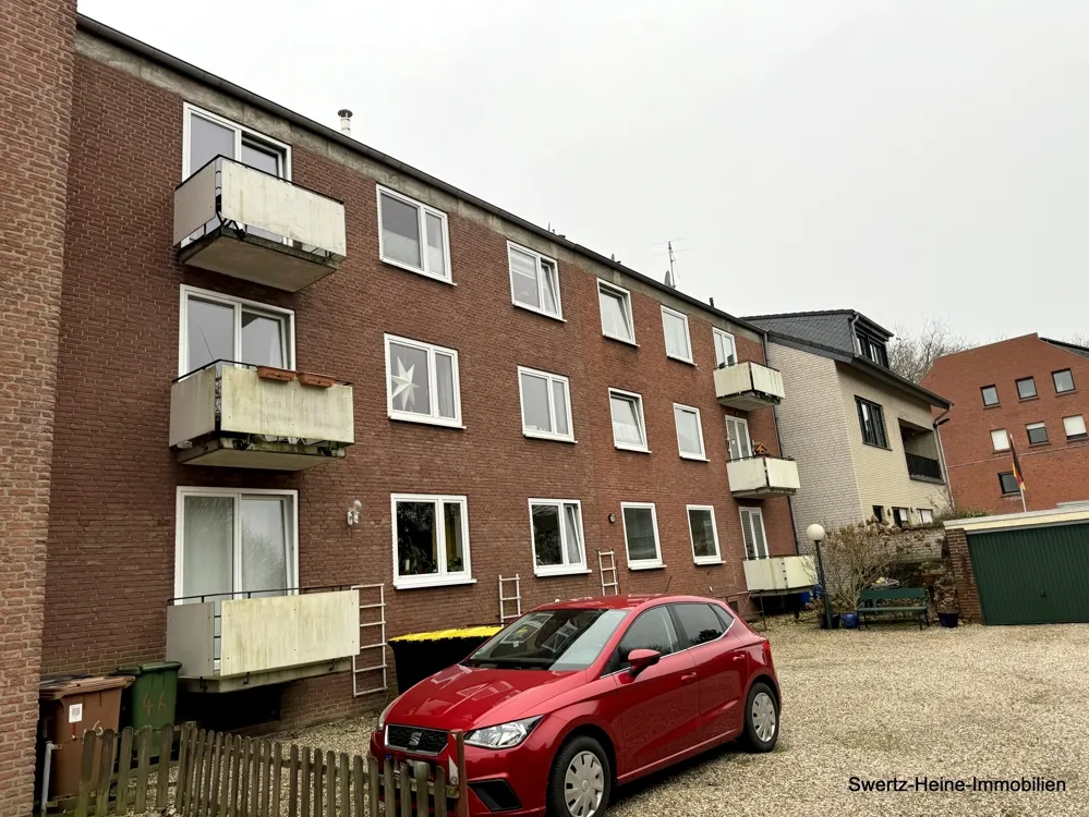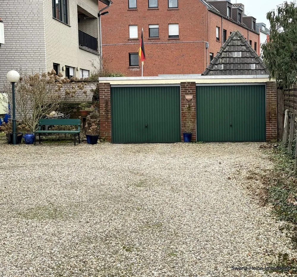 Ergänzt wird das Mehrfamilienhaus durch einen Hinterhof, dieser verfügt zusätzlich über zwei Garagen, weitere Stellplätze und Zugang zum Keller.