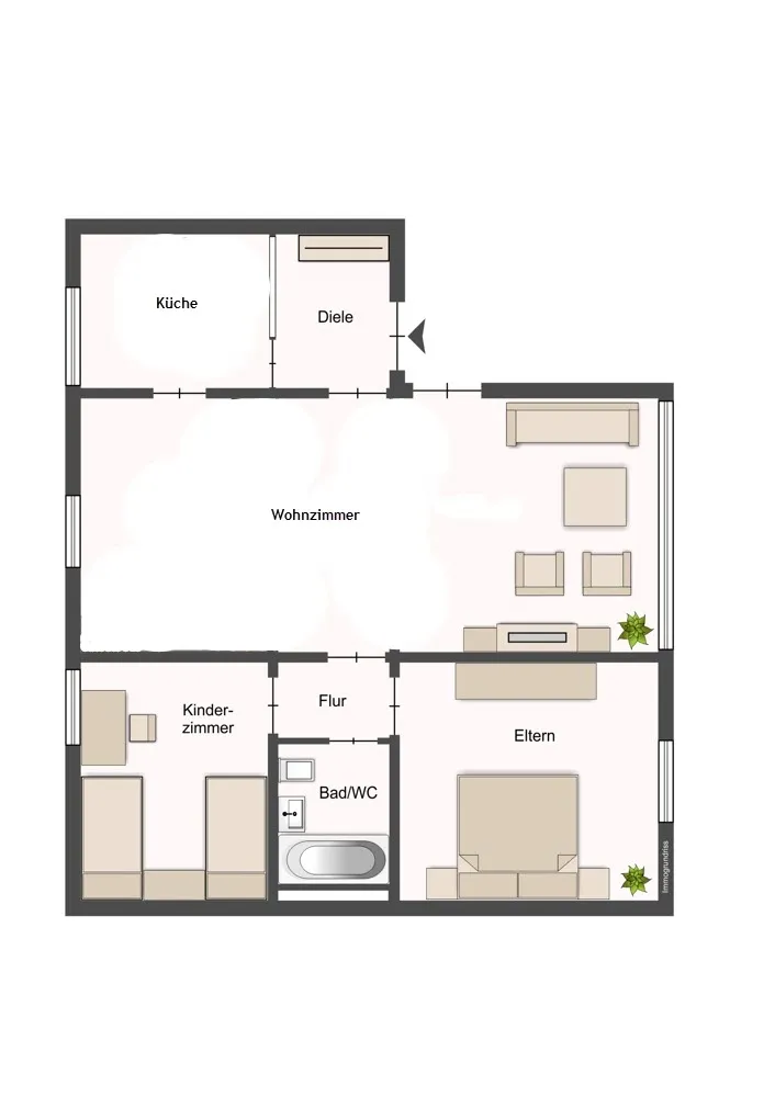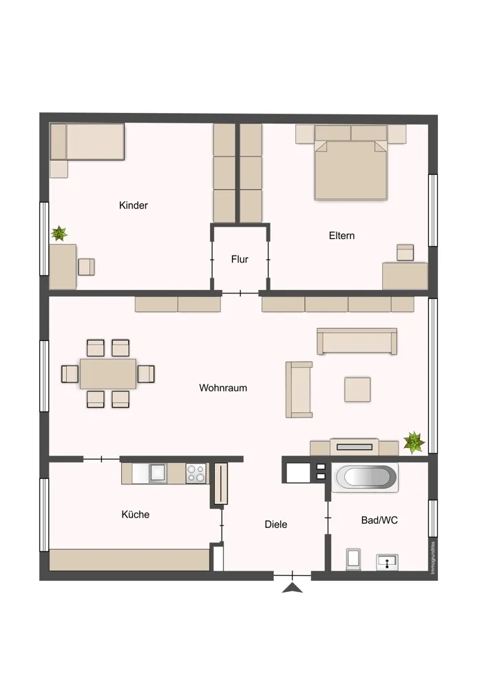 Die Wohnungen in auf der rechten Seite des Hauses verfügen ebenfalls über gleiche Grundrisse, haben jeweils 3 Zimmer, Küche, Diele und Bad - die Wohnfläche beträgt hier jeweils 88 m².
