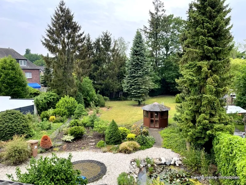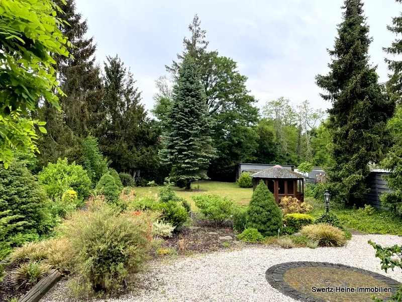 Das Stadthaus wird durch den parkähnlich gestalteten Außenbereich besonders hervorgehoben. Auf einer Gesamtgrundstücksgröße von ca. 990 m² erstreckt sich der angelegte Gartenbereich, der komplett eingefriedet und mit Rasenflächen, Blumenrabatten, kleinen Hecken und Wegen sowie einem z.T. alten Baumbestand versehen ist, somit bildet die Immobilie in Verbindung mit der Außenanlage eine gelungene Gesamteinheit.